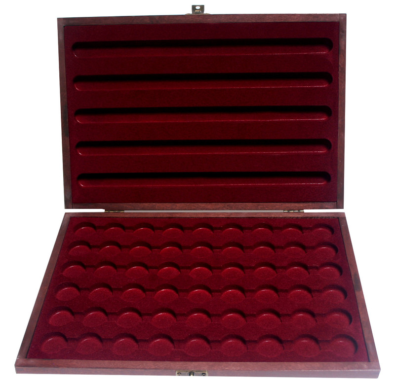 W ofercie firmy M.C.PLAST drewniane kasety z paletami na monety 2zł GN, 10zł AG